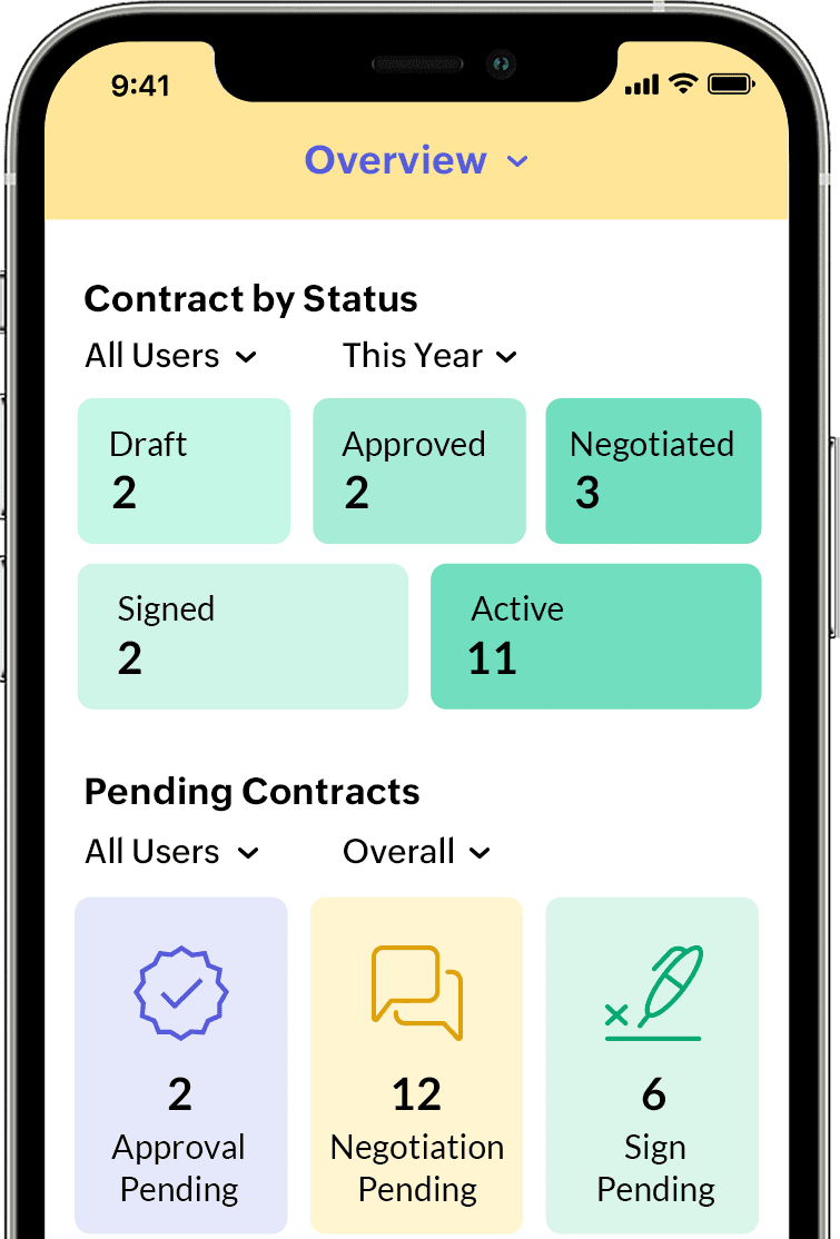 Bądź na bieżąco z umowami biznesowymi, gdziekolwiek jesteś. Aplikacja Zoho Contracts na iOS oferuje spersonalizowany mobilny pulpit nawigacyjny, który zapewnia wgląd w kluczowe wskaźniki umów. Aplikacja zawiera również wszystkie niezbędne funkcje, których będziesz potrzebować, gdy jesteś poza zasięgiem swojego biurka.