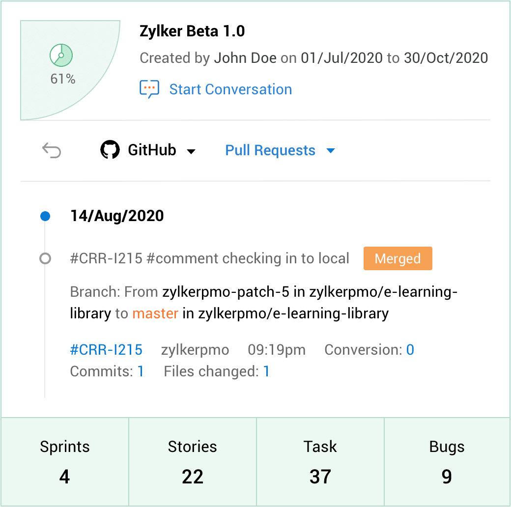 Zarządzanie wydaniami polega na połączeniu kilku aspektów cyklu życia oprogramowania w jeden zintegrowany wynik. Moduł planowania wydań w Zoho Sprints ułatwia współpracę międzyfunkcyjną i pomaga zespołom przyspieszyć cykle wydawnicze.