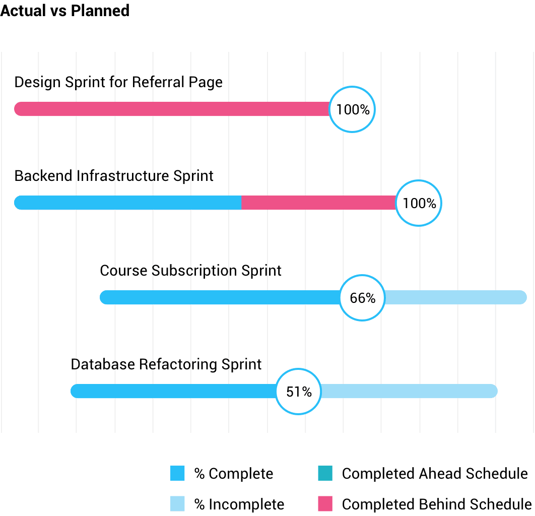 Zespoły, które odnoszą sukcesy ciągle się doskonalą. Oś czasu ze statusami pomaga Twojemu zespołowi identyfikować tzw. wąskie gardła i odkrywać sposoby na poprawę jakości pracy, eliminując jednocześnie jak najwięcej nieproduktywnych działań.