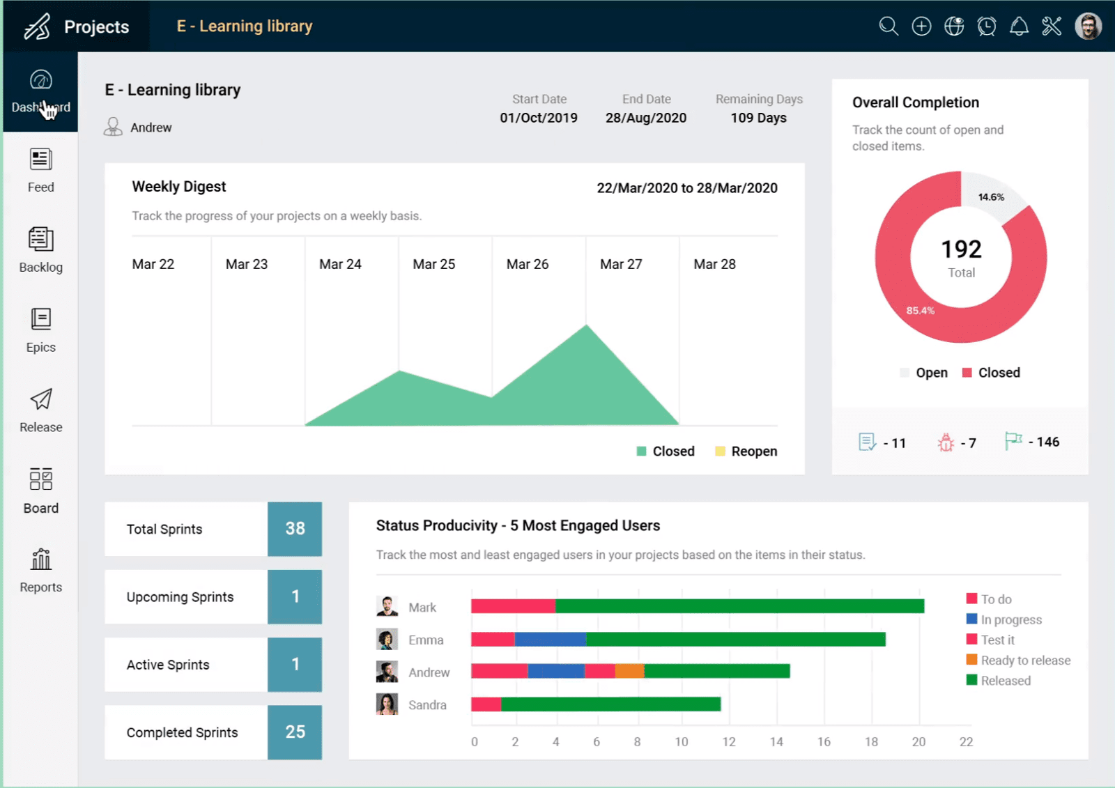 Oprogramowanie Sprints wspiera współprace zdalnych zespołów. Dzięki czemu możesz pracować ze swoim teamem z dowolnego miejsca i na dowolnym urządzeniu. Wewnętrzny kanał społecznościowy informuje członków zespołu o ważnych wydarzeniach. Zespoły mogą na bieżąco tworzyć relacje