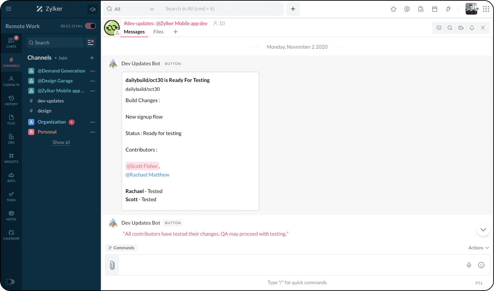 Zoho Cliq może pomóc Twojej firmie na każdym etapie procesu tworzenia wysokiej jakości oprogramowania. Zarejestruj się w Cliq i ciesz się bezstresowym wdrażaniem produktów.