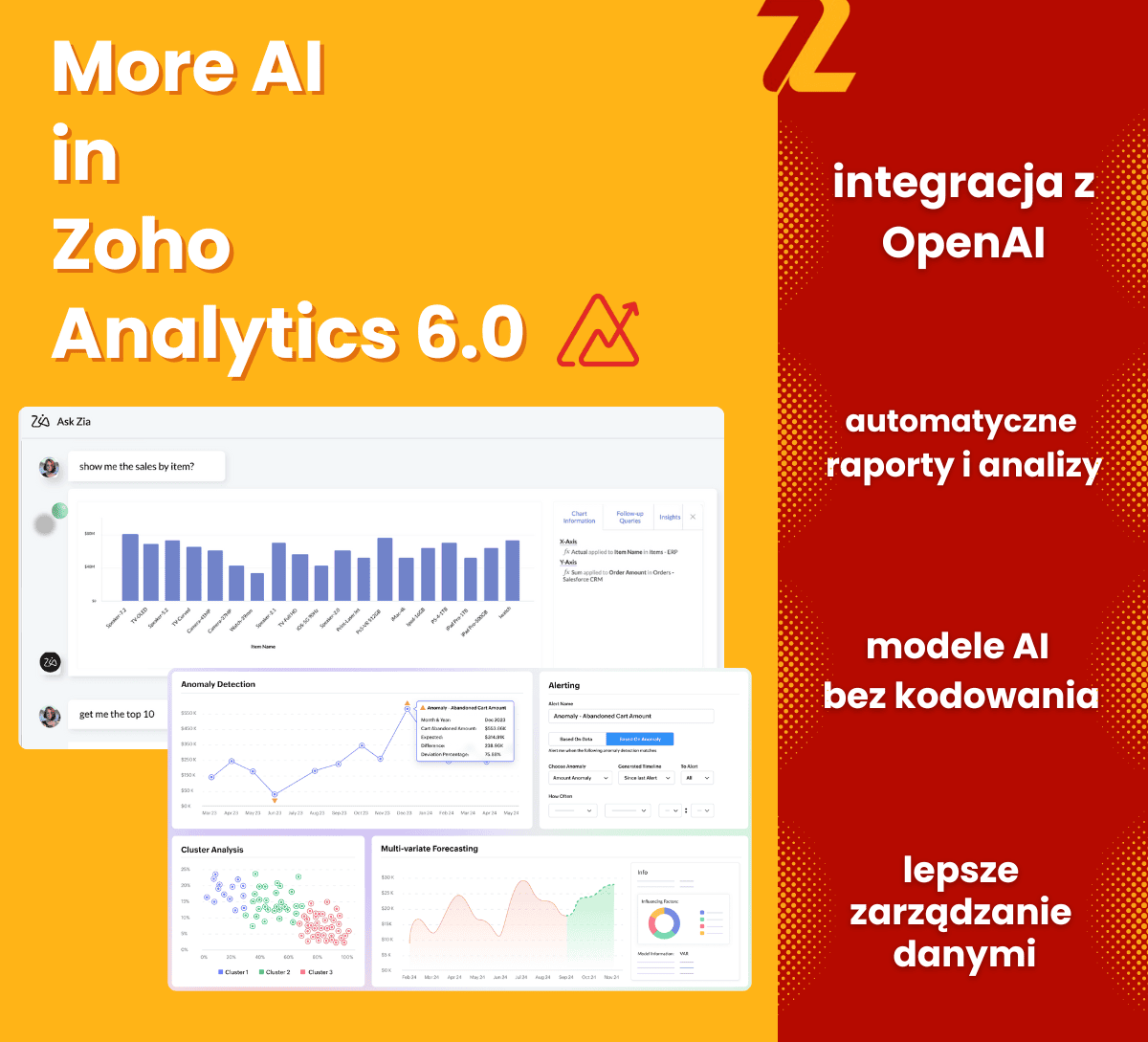 Nowości wprowadzają kluczowe zmiany w zarządzaniu danymi,sztucznej inteligencji (AI), uczeniu maszynowym (ML)oraz elastyczności platformy. Dzięki nowym funkcjom, Zoho Analytics umożliwia firmom każdej wielkości skuteczniejsze zarządzanie danymi, automatyzację analiz i uzyskiwanie wartościowych wniosków bez potrzeby znajomości zaawansowanych narzędzi technologicznych.