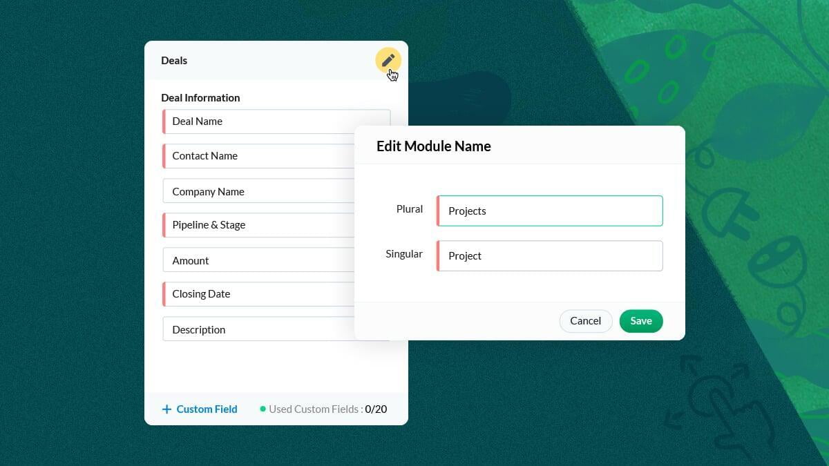 Wraz z rozwojem małych firm rozwija się ich działalność. Aby łatwo dostosować się do tego rodzaju zmian, dodano proste, jednoetapowe czynności, aby zrobić więcej miejsca. Jeśli musisz zmienić kolejność etapów lub dodawać nowe, ta nowa funkcja pozwala zwyczajnie przeciągać je i upuszczać w dowolnym miejscu przepływu treści. W najnowszej odsłonie Bigin oferuje także możliwość zmiany nazw modułów na dowolne, którymi posługujesz się w swojej firmie.