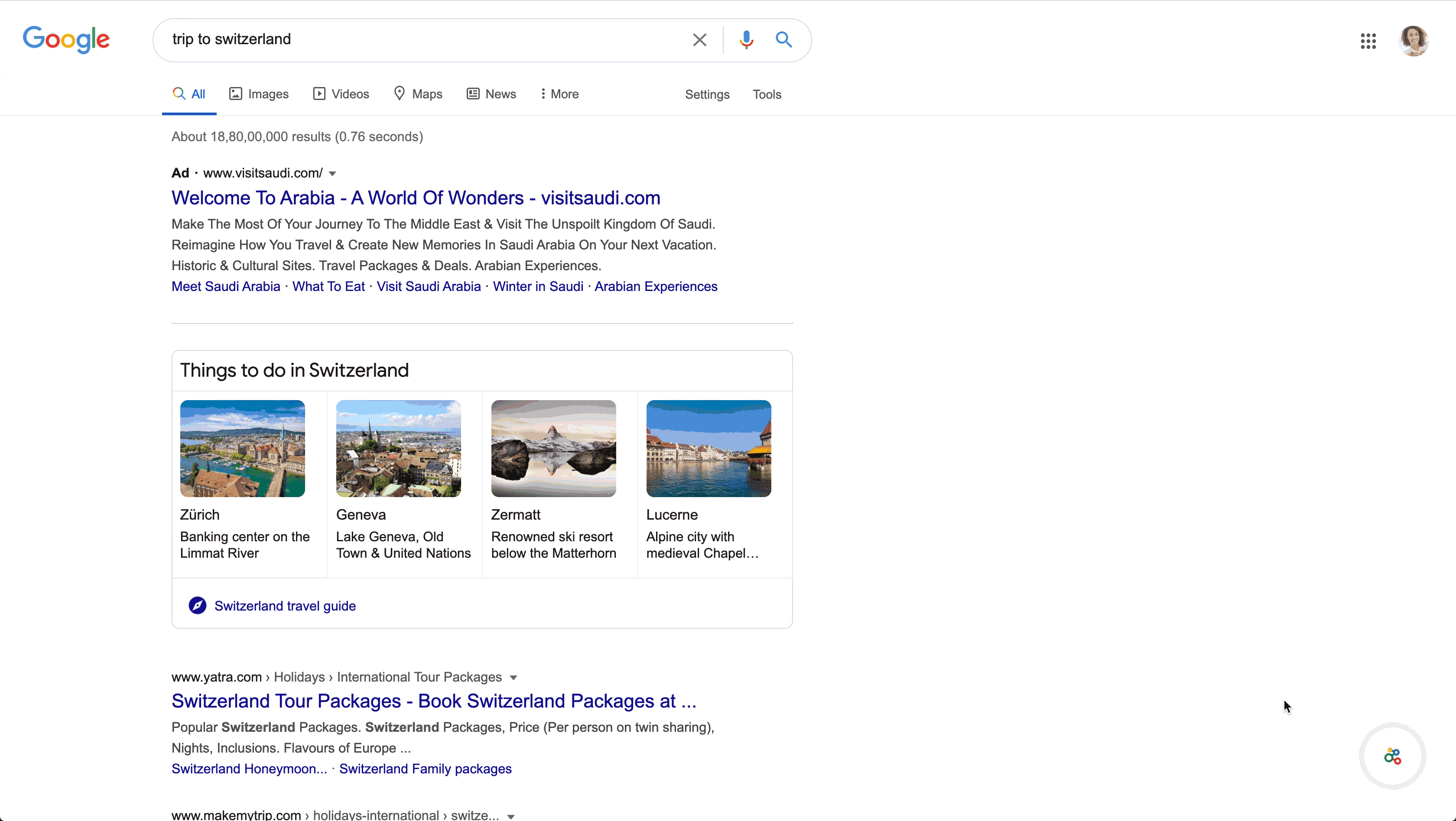 Kiedy trafisz na jakiekolwiek wyszukiwanie w Google, przycisk zShare zasugeruje powiązane słowa kluczowe i wyniki użytkownika pobrane z Twittera, abyś mógł je sprawdzić.