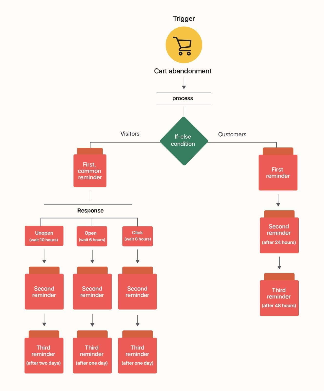 Przekonanie dzisiejszych kupujących wymaga wysłania im wielu komunikatów, a e-mail jest prawdopodobnie najbardziej spersonalizowanym kanałem komunikacji. Twoja platforma e-commerce zapewne umożliwia wysyłkę automatycznych maili gdy ktoś porzuca koszyk podczas procesu zakupowego. Ale już praktycznie nie możliwe jest aby zaplanować sekwencję maili następczych do odbiorców, którzy otworzyli pierwsze przypomnienie, ale nadal nie wracają do swoich koszyków i nie kończą procesu płatności/