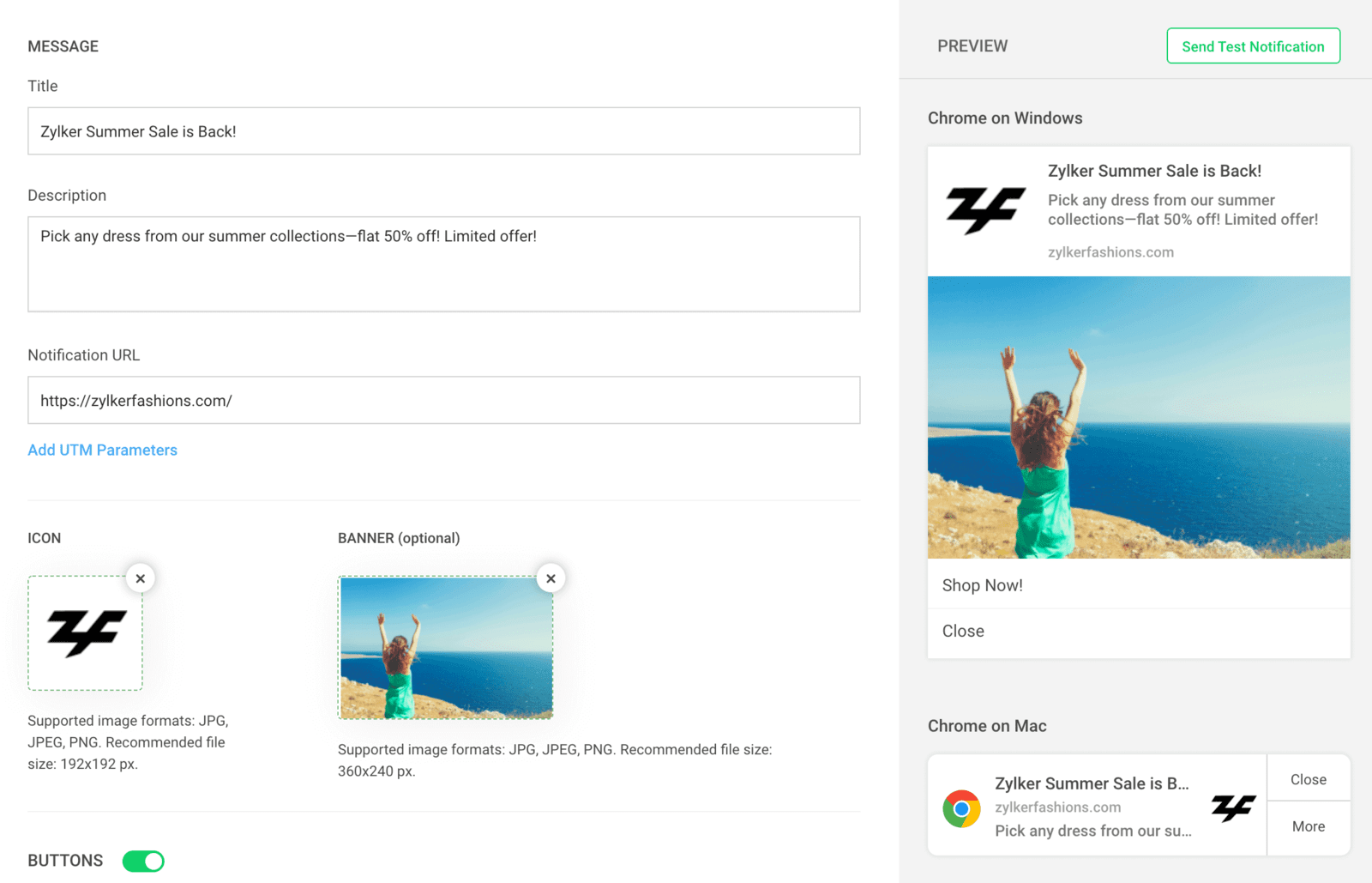 Zbuduj grupę odbiorców dla swojej marki i regularnie współpracuj z nimi wykorzystując powiadomienia Push. Powiadomienia Push to jedna z najlepszych strategii ponownego zaangażowania, ponieważ pomaga odwiedzającym być na bieżąco z Twoją marką, nawet jeśli nie są w Twojej witrynie. To także świetne narzędzie dla marketerów. Pozwala im zachęcić docelowych odbiorców do interakcji z Twoją witryną jednym kliknięciem. Ta taktyka marketingowa oparta na zgodzie, ponieważ wysyłasz powiadomienia tylko do odwiedzających, którzy wyrazili zgodę na otrzymywanie aktualizacji. W ten sposób możesz określić, kto jest zainteresowany Twoimi produktami / usługami.