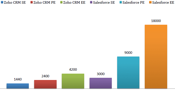 | Funkcje | Zoho CRM SE | Salesforce SE | Zoho CRM PE | Salesforce PE | Zoho CRM EE | Salesforce EE |