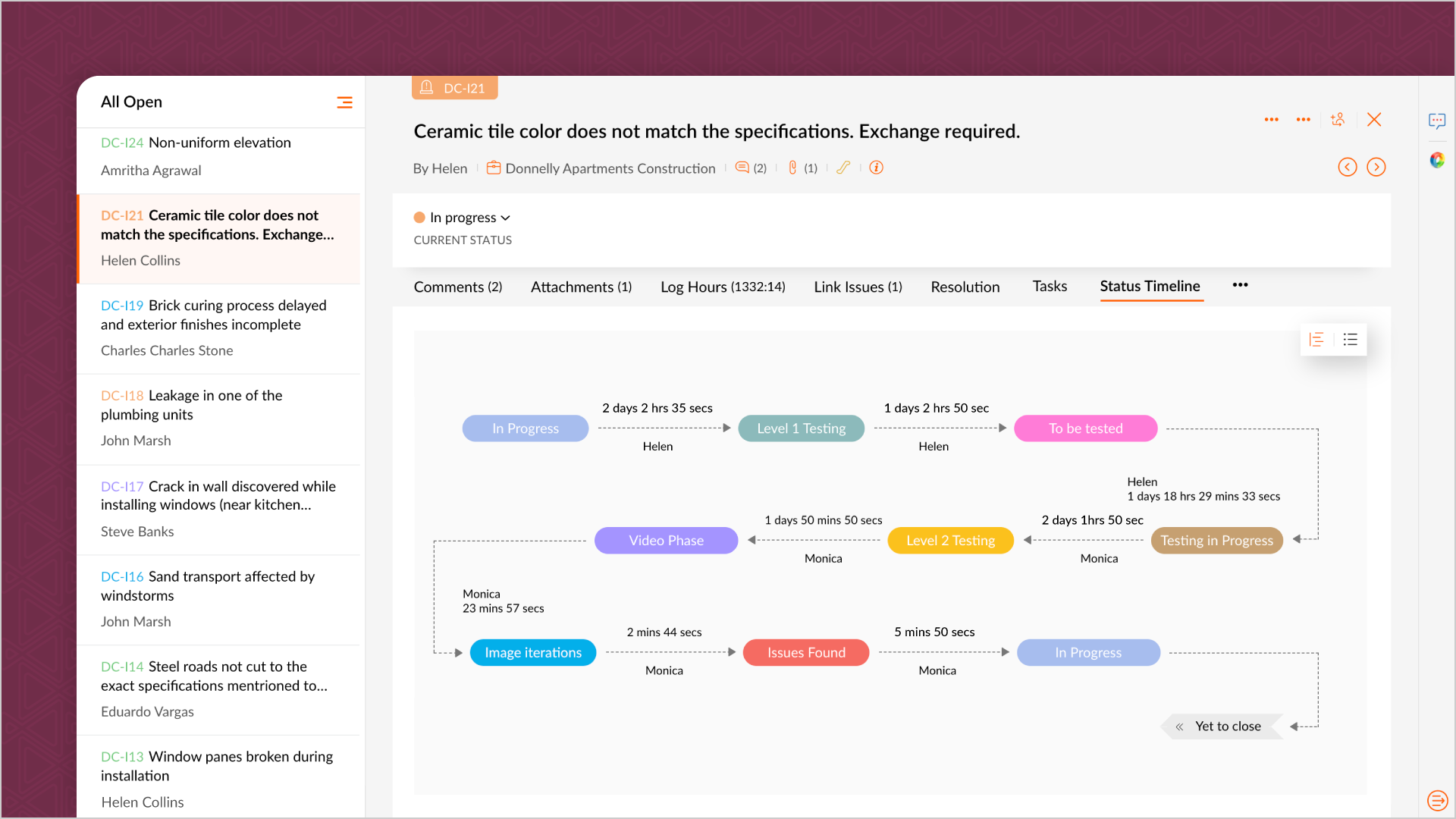 Projekty napotykają na swojej drodze różne problemy. Nowa oś czasu ze statusem problemu, umożliwia śledzenie problemów i czasu potrzebnego na ich rozwiązanie. Ta funkcja pozwala lepiej zwizualizować sytuacje i pomaga w płynnej realizacji projektu. Interfejs pokazuje, kto zaktualizował status problemu, dzięki czemu członkowie zespołu wiedzą, do kogo się zwrócić, jeśli problem pojawi się ponownie.