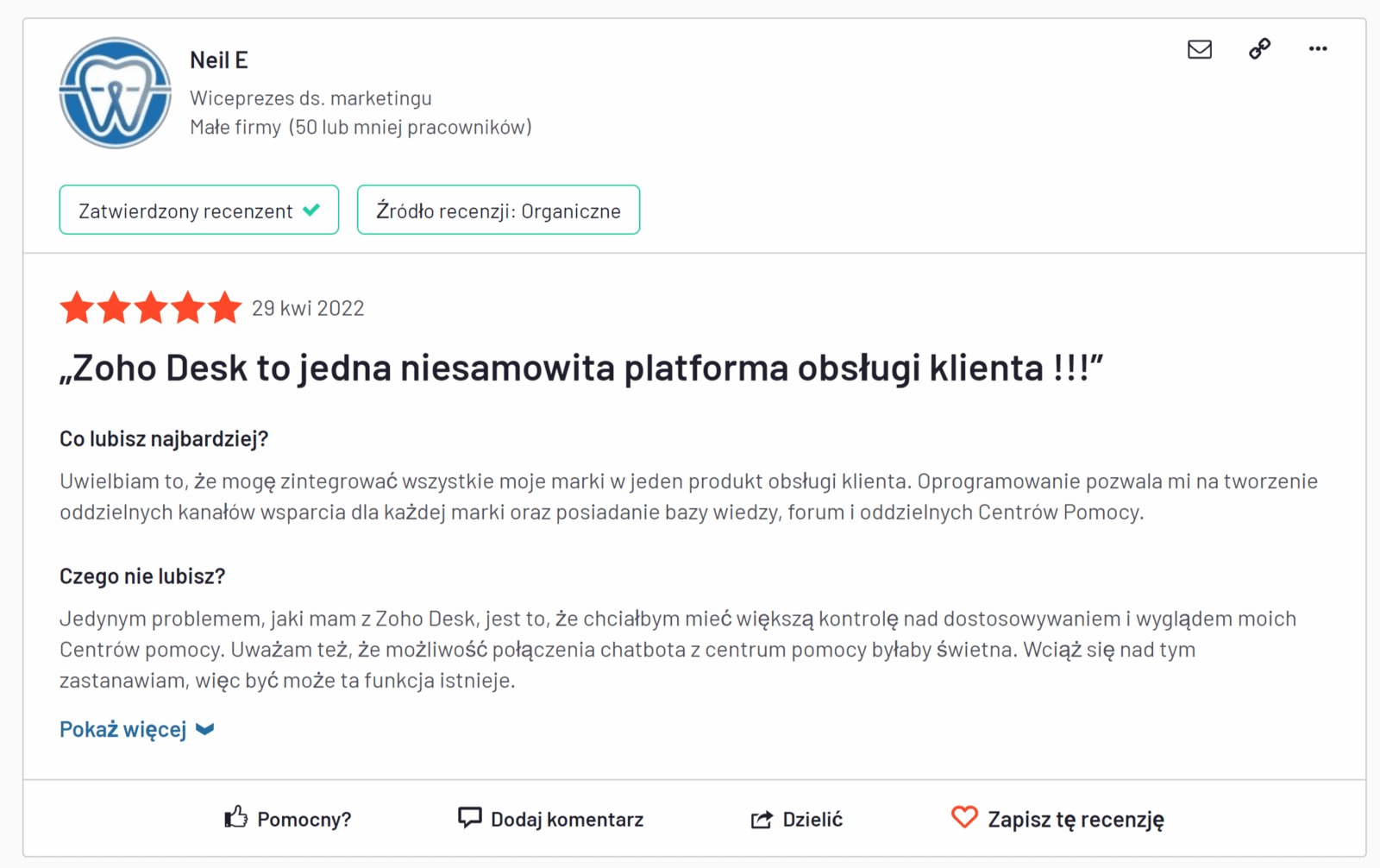 Dlaczego Zoho Desk jest uważany za Lidera?