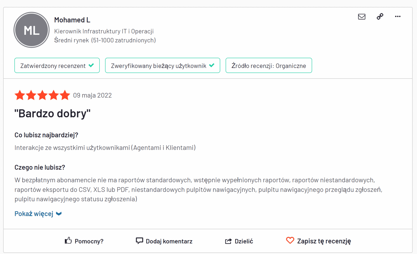 - Duża liczba recenzji wskazujących na bardziej reprezentatywne i dokładne odzwierciedlenie doświadczenia klienta.