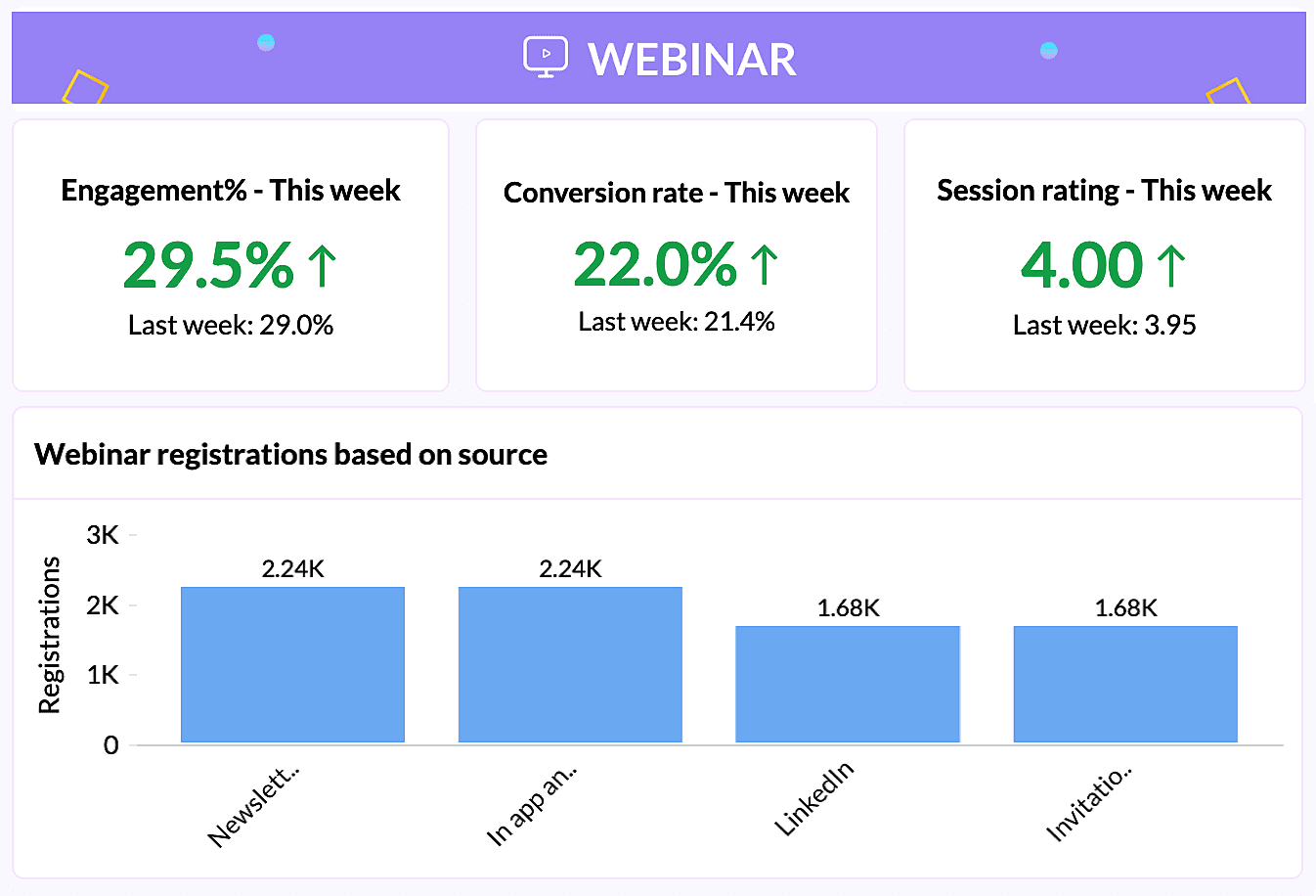 Poniższy fragment pulpitu nawigacyjnego dostarczy Ci informacji o skuteczności Twoich webinarów.