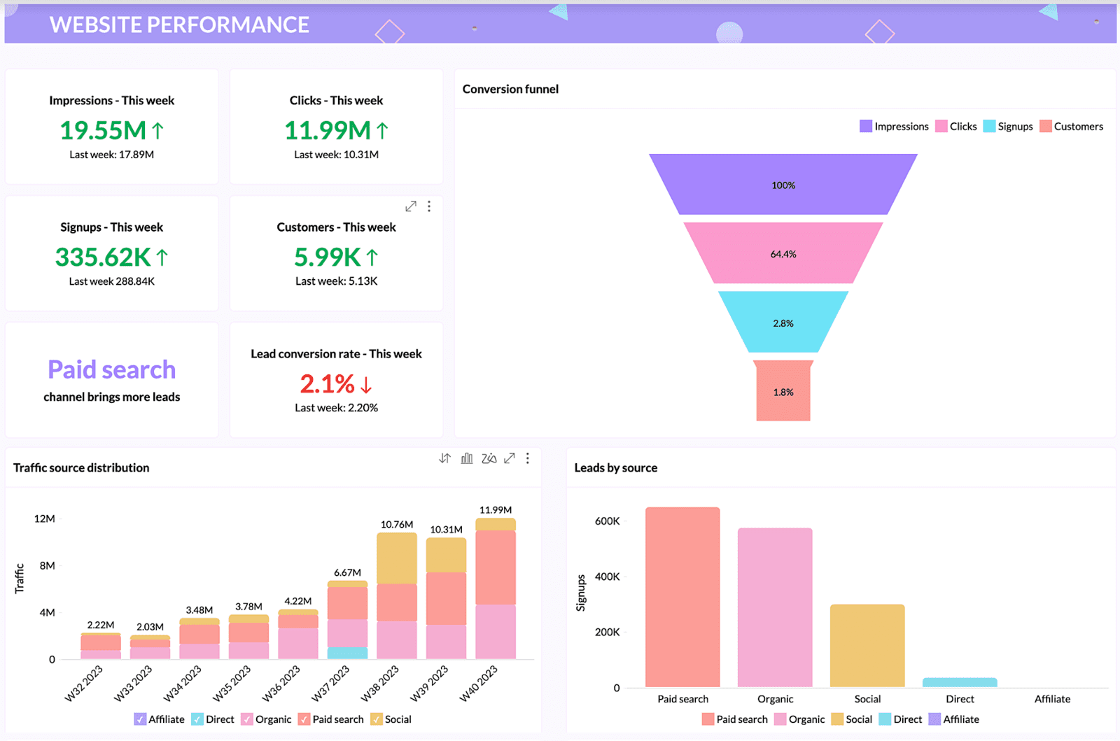 Dla marketerów, zajmujących się działaniami począwszy od badań po marketing e-mailowy, kluczowe jest posiadanie umiejętności analitycznych. W obecnym krajobrazie marketingowym, pełnym różnorodnych narzędzi generujących obszerne dane, istotne jest skoncentrowanie się na najważniejszych wskaźnikach. Dzięki Zoho Analytics, które zgromadziło informacje od doświadczonych specjalistów marketingowych, stworzono ujednolicony pulpit marketingowy, ułatwiający analizę i porównywanie efektywności działań marketingowych.